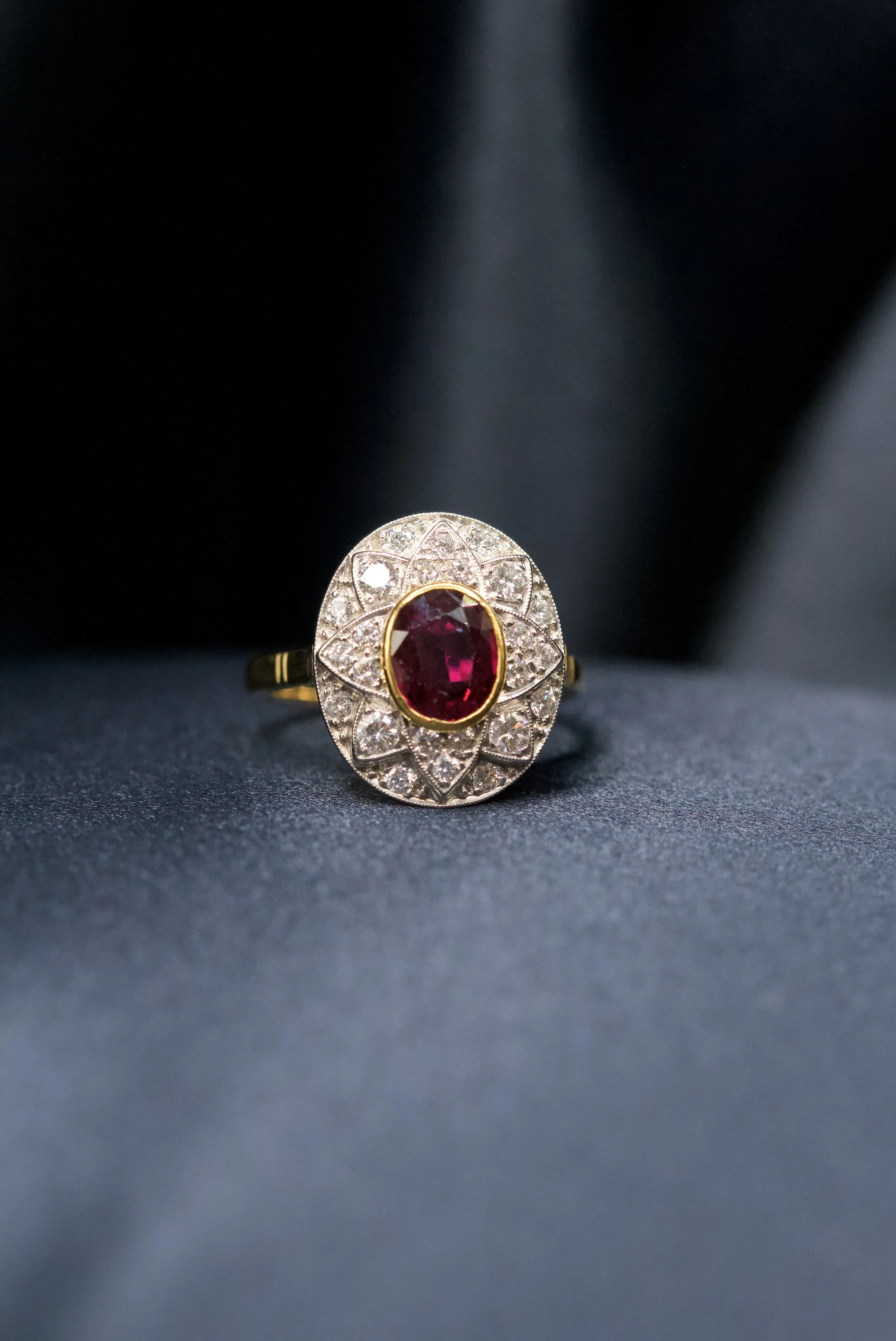 18ct Yellow Gold & Platinum Ruby & Diamond Cluster